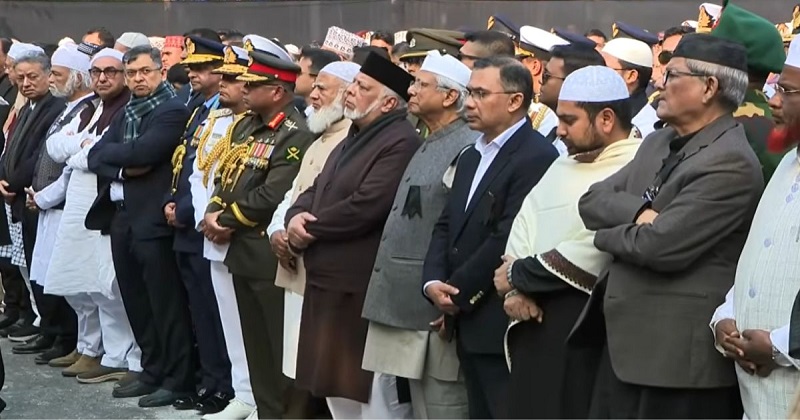 জানাজার ইমামতি করছেন জাতীয় মসজিদ বায়তুল মোকাররমের খতিব মাওলানা আবদুল মালেক। সাবেক এই প্রধানমন্ত্রীর জানাজায় অংশ নিয়েছেন প্রধান উপদেষ্টা ড. মুহাম্মদ ইউনূস।