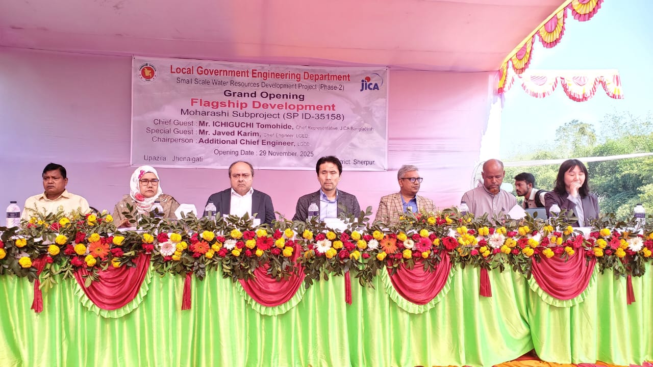 পরে মহারশি ফ্লাগশীপ উন্নয়ন উপ-প্রকল্পের উদ্বোধনী সভায় সভাপতিত্ব করেন স্থানীয় সরকার প্রকৌশল অধিদপ্তর (এলজিইডি) তত্ত¡াবধায়ক প্রকৌশলী সৈয়দা আসমা খাতুন। প্রধান অথিরি বক্তব্য দেন জাইকার বাংলাদেশের প্রধান প্রতিনিধি ইচিগুচি তমোহিদে। এতে আরও বক্তব্য দেন জাইকা বাংলাদেশের সিনিয়র প্রতিনিধি সোজি ইজোমি, এলজিইডির প্রধান প্রকৌশলী জাবেদ করিম, এলজিইডির ক্ষুদ্রাকার পানি সম্পদ উন্নয়ন প্রকল্পের (দ্বিতীয় পর্যায়) পরিচালক মো. সানিউল হক, শেরপুর এলজিইডির নির্বাহী প্রকৌশলী মো. মোস্তাফিজুর রহমান, মহারশি রাবারড্যাম পানি ব্যবস্থাপনা সমবায় সমিতির সভাপতি আব্দুর রশিদ প্রমুখ।