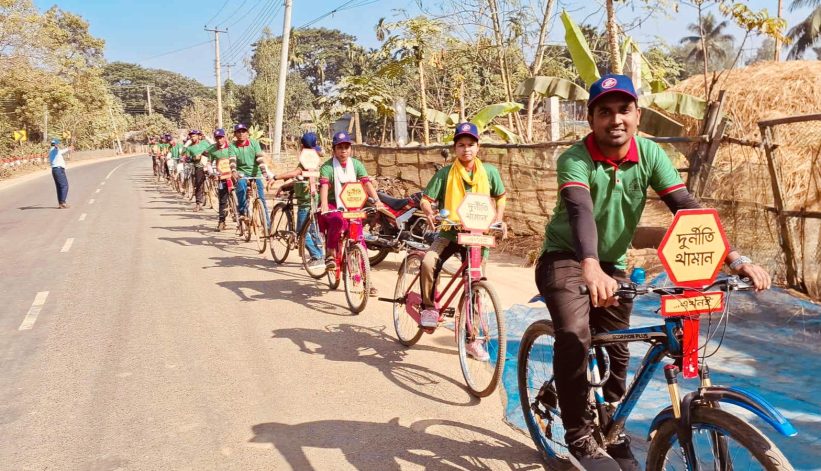 শেরপুরের নালিতাবাড়ীতে প্রায় ৫ কিলোমিটার সাইকেল চালিয়ে দুর্নীতিবিরোধী প্রচারণা করেছে অর্ধশতাধিক তরুণ-তরুণী।