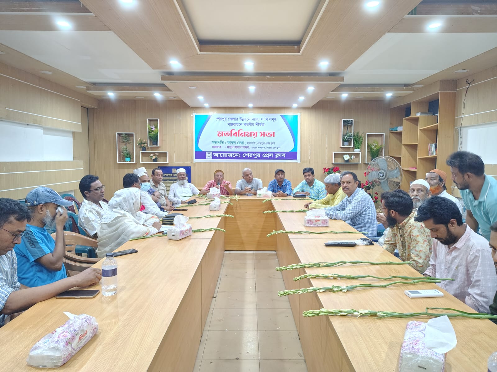 শেরপুর প্রেস ক্লাবের আয়োজনে বিভিন্ন রাজনৈতিক দলের শীর্ষস্থানীয় নেতৃবৃন্দ, মুক্তিযোদ্ধা এবং পিপি, জিপি ও আইনজীবী সমিতির নেতৃবৃন্দের সাথে জেলার উন্নয়নে নায্য দাবী আদায়ে করনীয় শীর্ষক মতবিনিময় সভা অনুষ্ঠিত হয়েছে। ৫ মে সোমবার রাতে শেরপুর প্রেস ক্লাব মিলনায়তনে ক্লাবের সাধারণ সম্পাদক মাসুদ হাসান বাদলের সঞ্চালনায় সভাপতিত্ব করেন ক্লাবের সভাপতি কাকন রেজা।